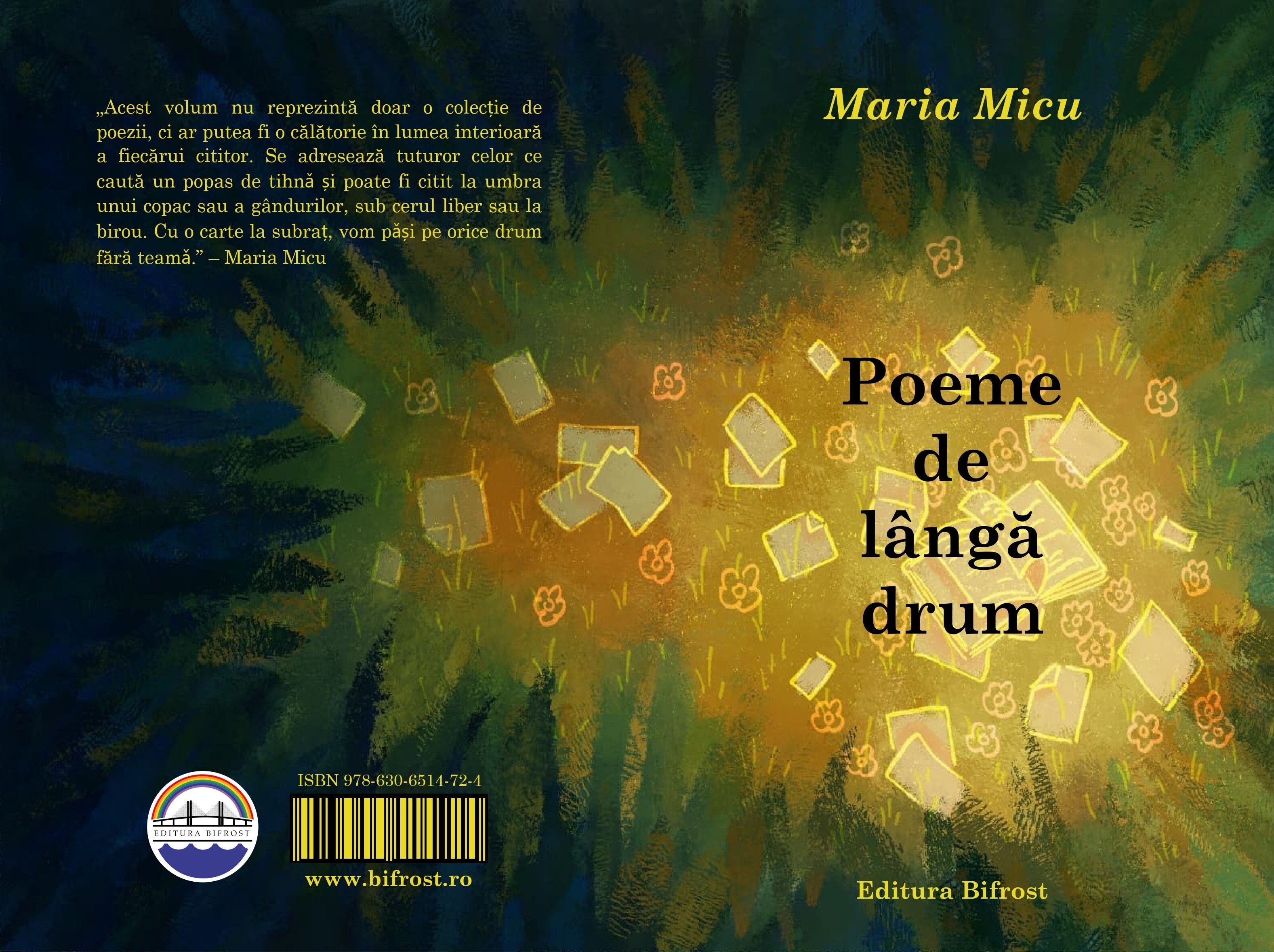 „Acest volum nu reprezintă doar o colectie de poezii, ci ar putea fi o călătorie în lumea interioară a fiecărui cititor. Se adresează tuturor celor ce caută un popas de tihnă si poate fi citit la umbra unui copac sau a gândurilor, sub cerul liber sau la birou. Cu o carte la subrat, vom păși pe orice drum fără teamă." – AUTOAREA